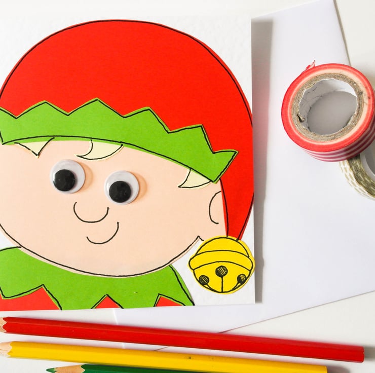 A cute handmade elf Christmas card to send to make someone smile. A unique card to send to a child or young at heart Christmas lover. His eyes are googly to add to the fun!