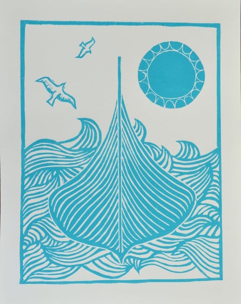 Gokstad Viking ship linoprint