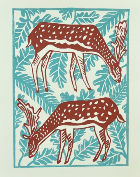 I was insipired by the deer in a nearby National Trust property called Dunham Massey in Cheshire. The deer roam freely- they are part of the landscape there and we locals very much enjoy them when we go for a walk in the park.