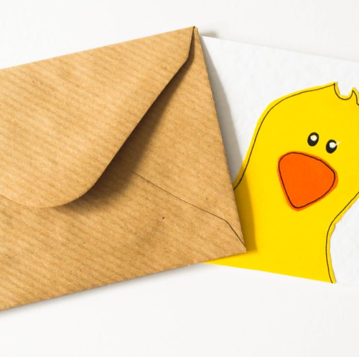 A pack of 6 yellow duck greeting cards. Use them as note cards, birthday cards or give as a gift as a sweet stationary set
