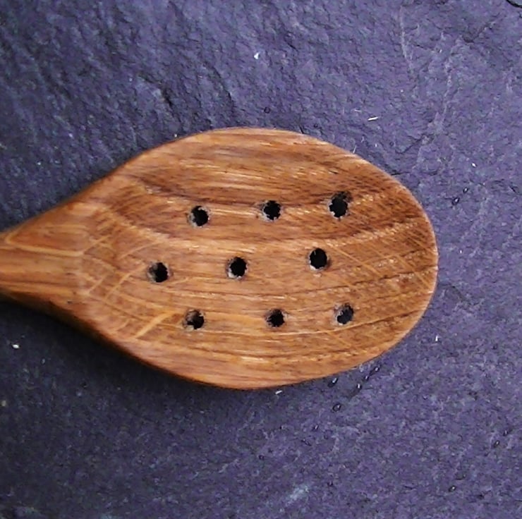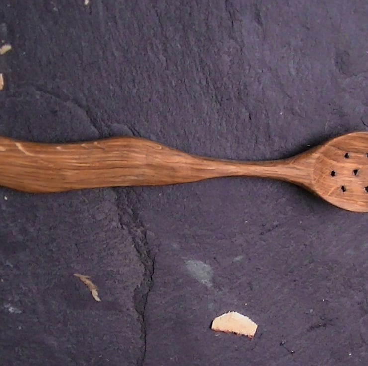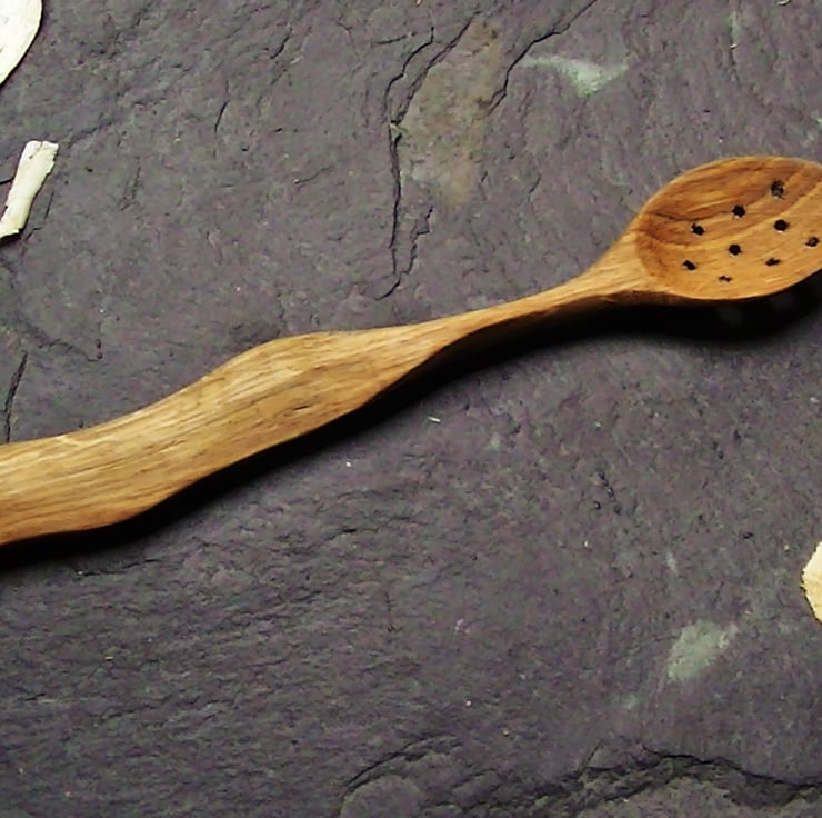 The spoon is hand carved from natural oak wood taken in North Wales.