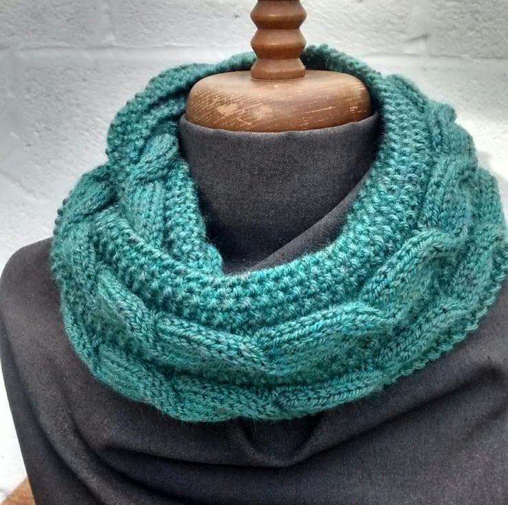 This beautifully cosy and warm handmade cowl scarf can be worn wrapped twice to make a cosy cowl or simply pop over your head as a circular scarf.