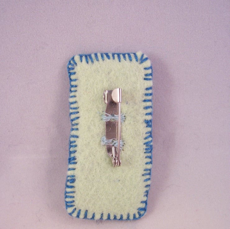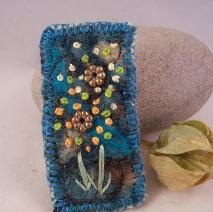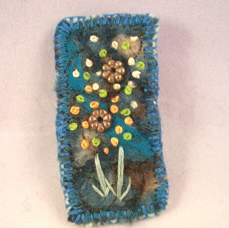 Needle felted and hand embroidered brooch, backed with wool felt.