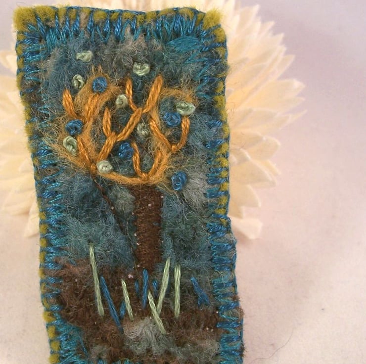 Needle felted and hand embroidered brooch, backed with wool felt.