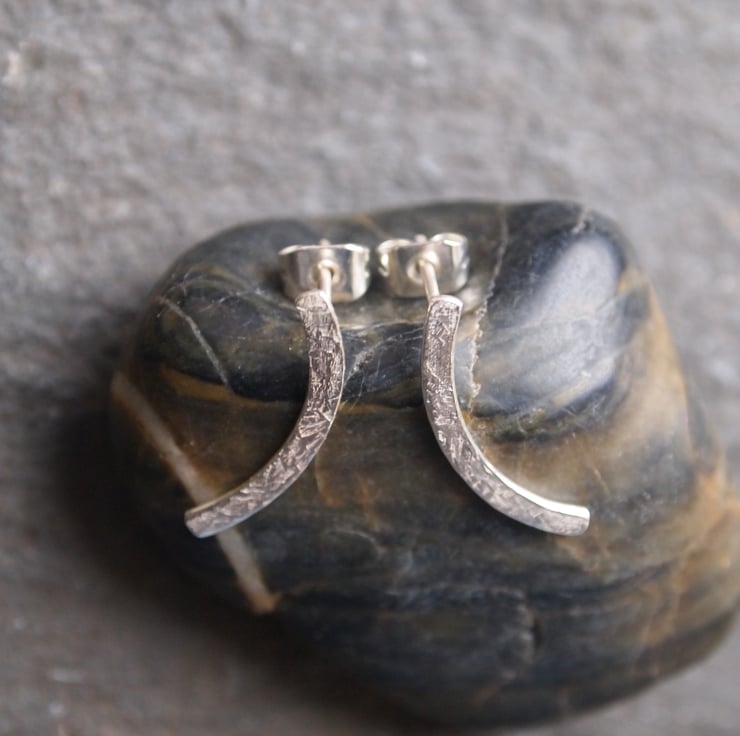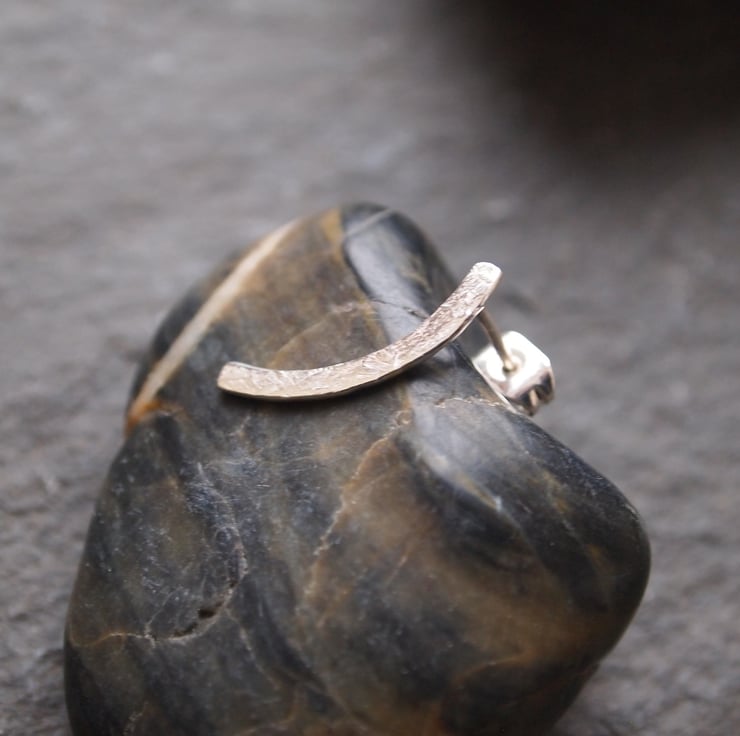 ARC stud earrings - a curve of sterling silver has been hammered to add detail and texture then burnished to a bright shine to finish. These are a stylish and understated pair of earrings, great for everyday wear.