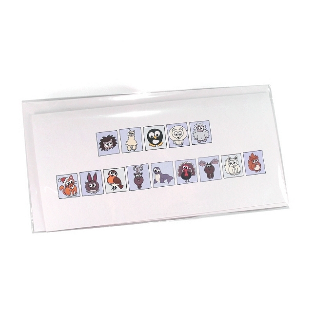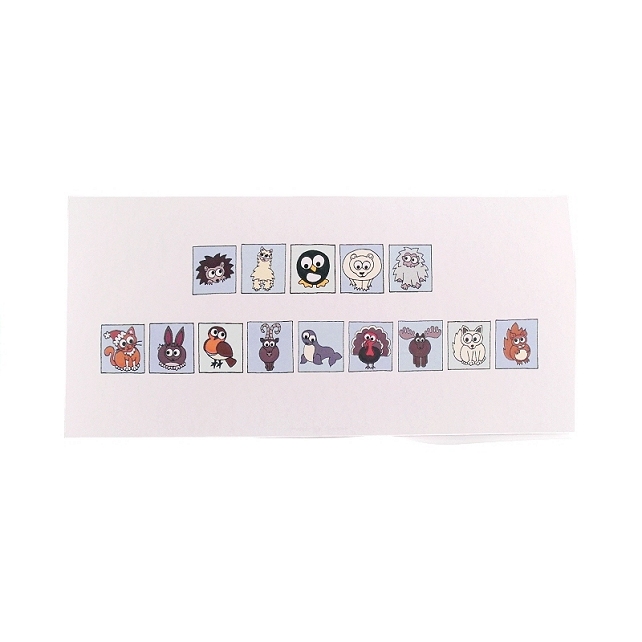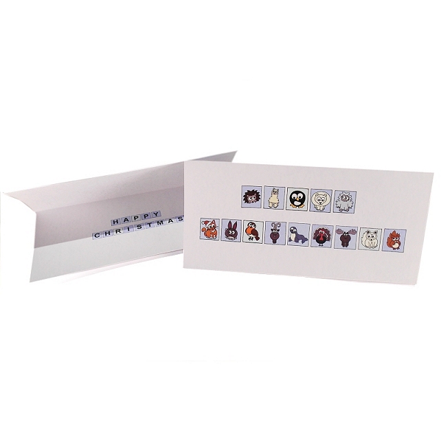 The message "Happy Christmas" is also inside the card, in corresponding coloured boxes to the animals on the front.