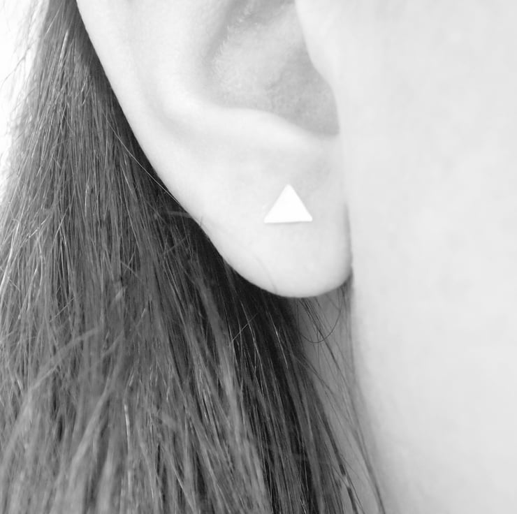 Small Triangle Earrings in Sterling Silver. These are small studs that are perfect for adding to your everyday jewellery collection. Made entirely from Sterling Silver they come complete with Sterling Silver butterfly back, and are ready to gift in a small tin box.