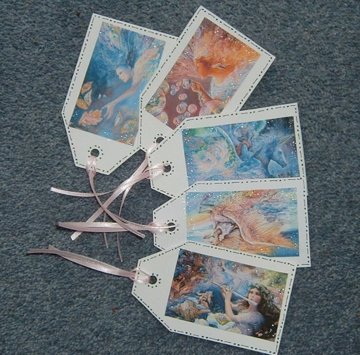 These have been created using quality materials. The card has been hand cut and decorated...then the images have been added and glittered and the tags have been hand embellished.