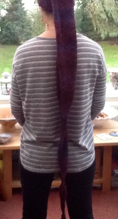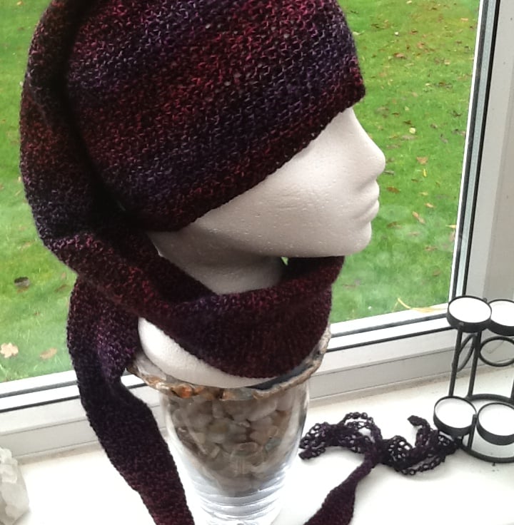 Winter Berry Super long Elf style Crocheted Hat scarf with Crocheted Tassel detail, to give it that little finishing touch!