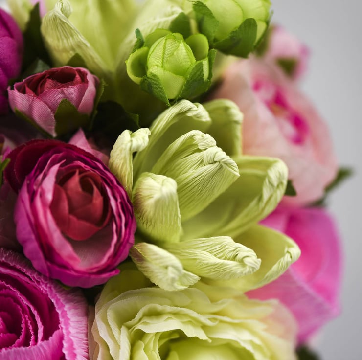 A beautiful Spring inspired posy of handmade paper Roses, Succulents and faux silk Ranunculus, create a everlasting flower collection as pretty as the real thing.