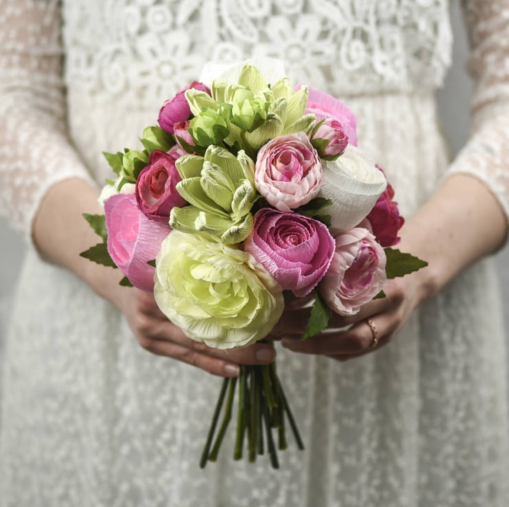 If they are treated carefully and protected from moisture a paper flower will last a lifetime. Making them the perfect alternative to fresh flowers, the ideal bouquet or posy for those that want something a little different to remember their wedding day with.