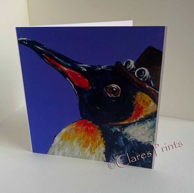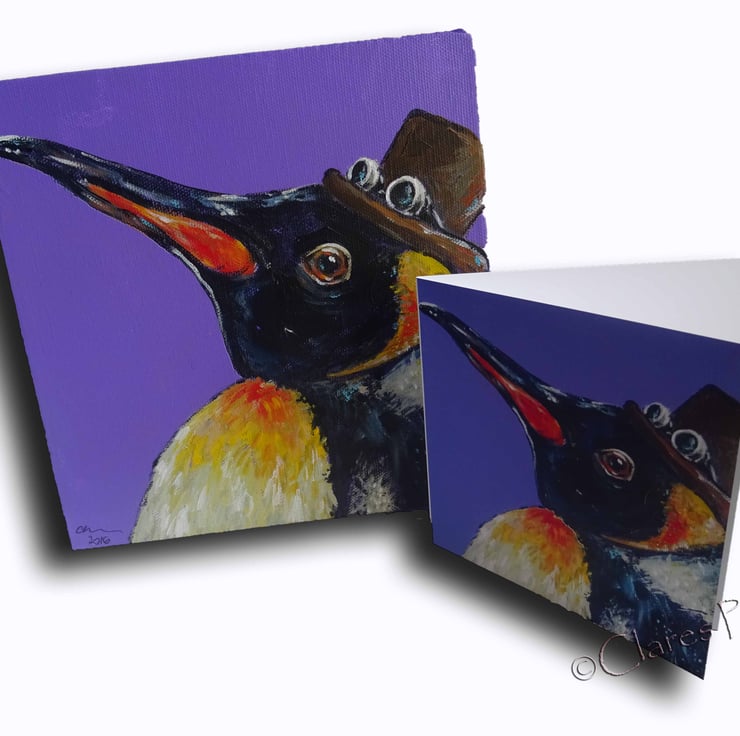 Blank greeting card from my original Acrylic painting Steampunk King Penguin