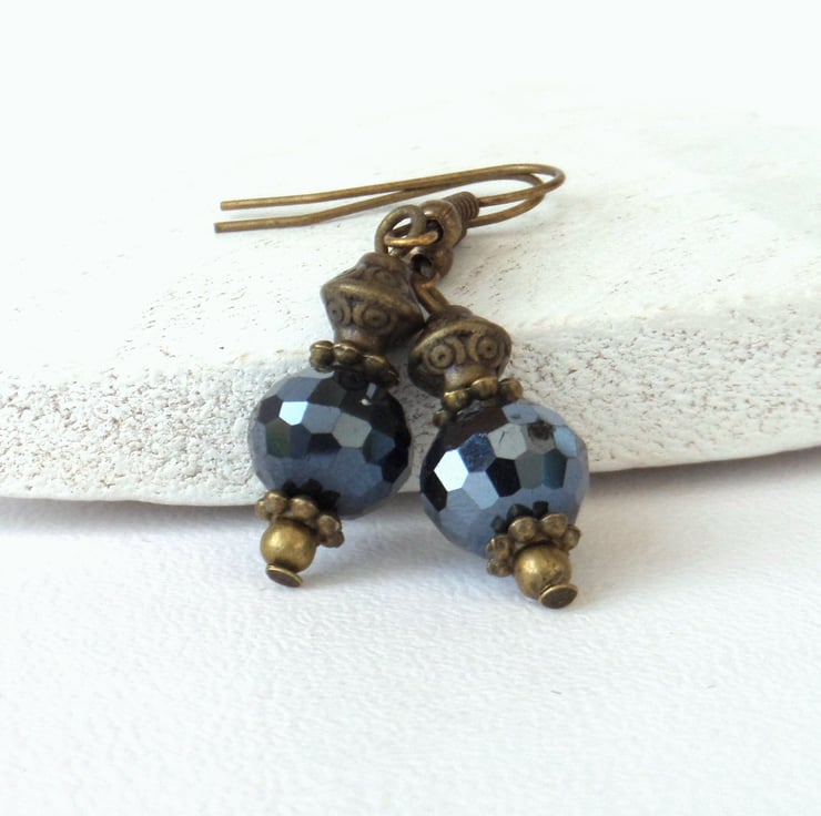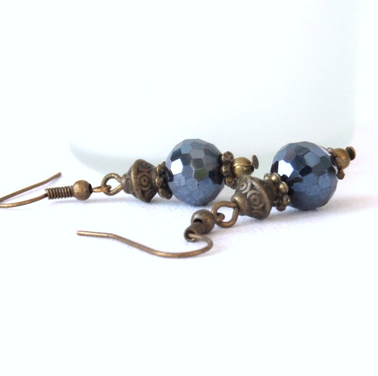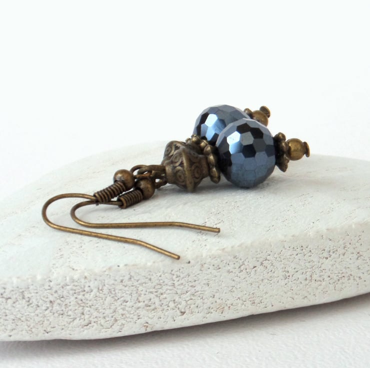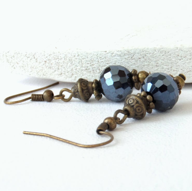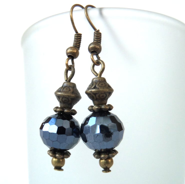 The crystals are 10 mm rounds and faceted and combined with the bronze wires they give the earrings a lovely vintage appearance.