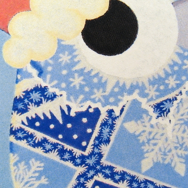 This little pysanka chick is a winter bird, it's egg with a snowflake pattern in cold blues and whites.