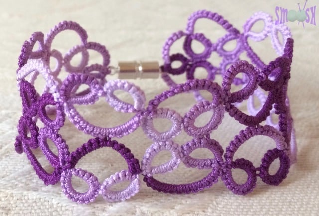This bracelet is made with a technique called tatting, which is quite a rare craft. I have recently become obsessed with it: the wonderful coloured cottons, the making and the beautiful end results, though it took me quite a long time to perfect. There's also loads more to learn and experiment with, so I'm very excited about evolving some new bracelet designs, and adding different beads.