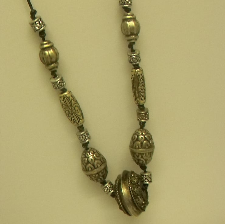 I have always liked the ethnic look and find the combination of large beads and leather typifies this.