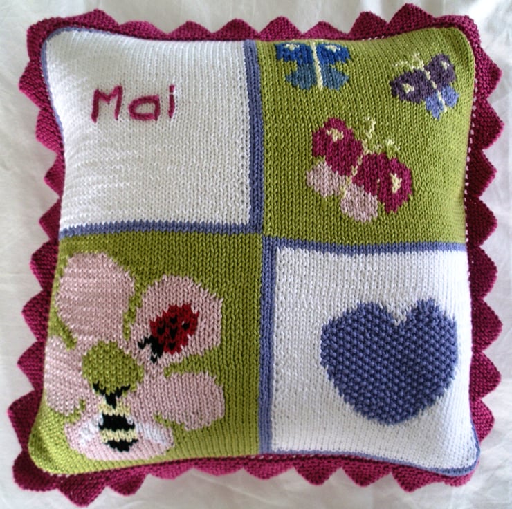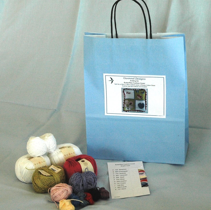 Knitting kit for a 35cm x 35cm (14 ins x 14 ins) hand knitted cushion cover. The pattern is NOT included, please order a PDF copy from my Knitting Patterns Collection or message me if you would prefer a printed copy on good quality colour paper.