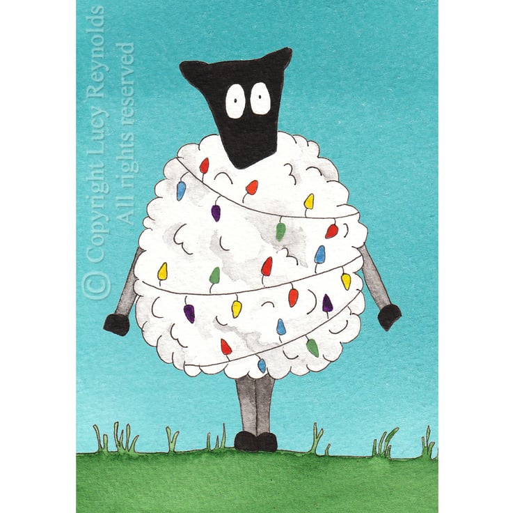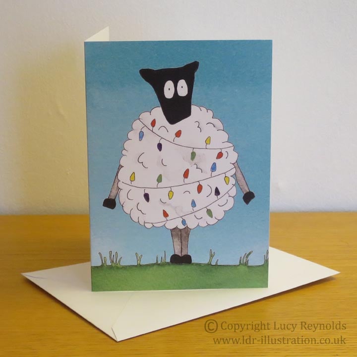 Greeting card featuring my 'Christmas Sheep' illustration. I painted the original image with watercolours.