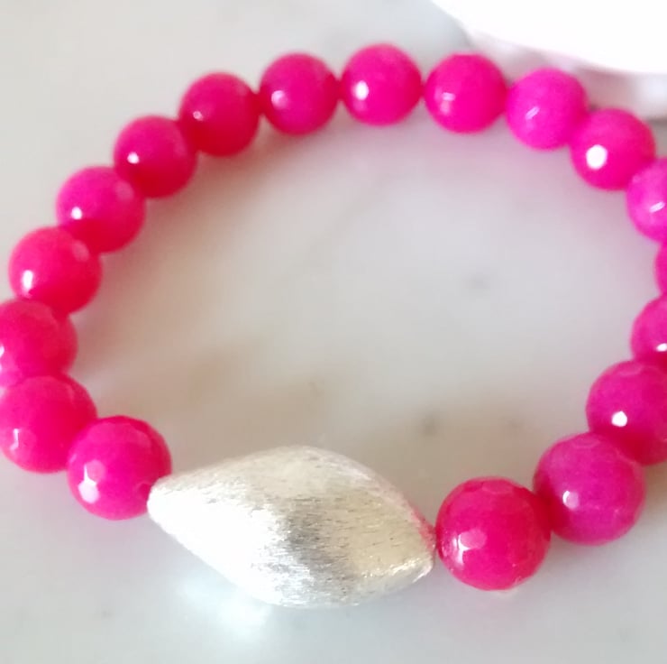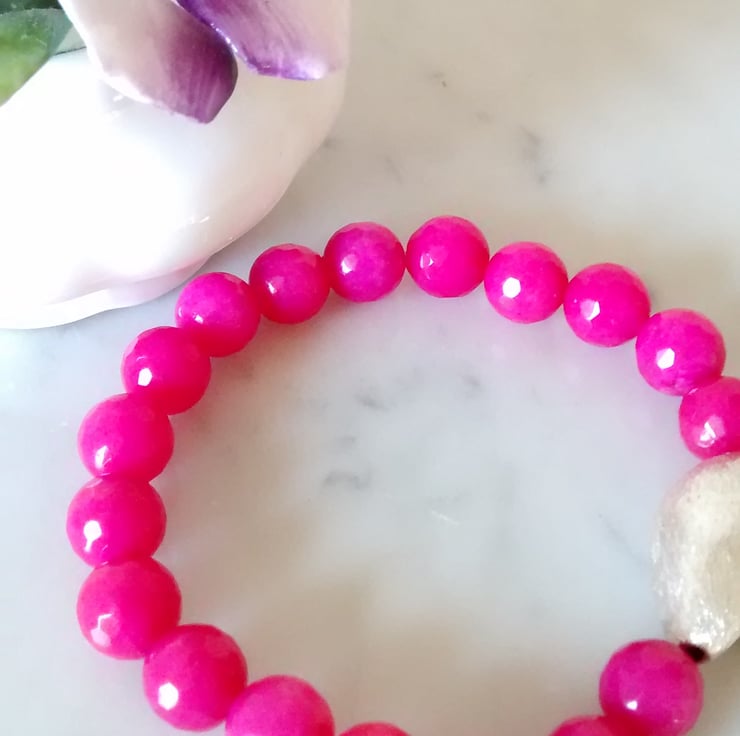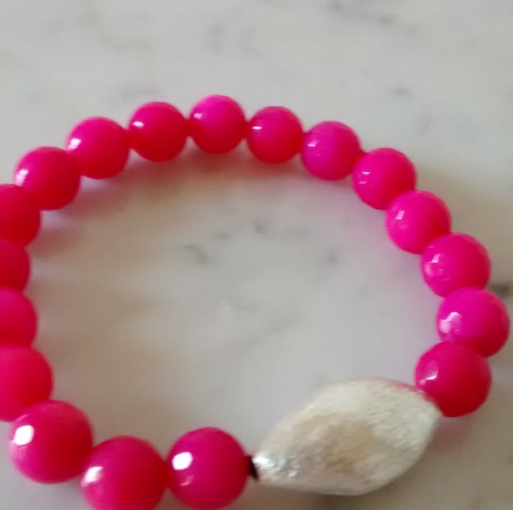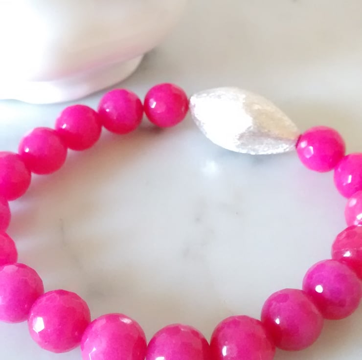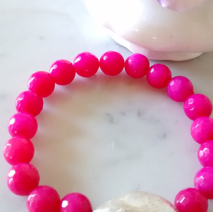 Hot pink quartzite faceted rounds 8mm make this very pretty stretchy bracelet.