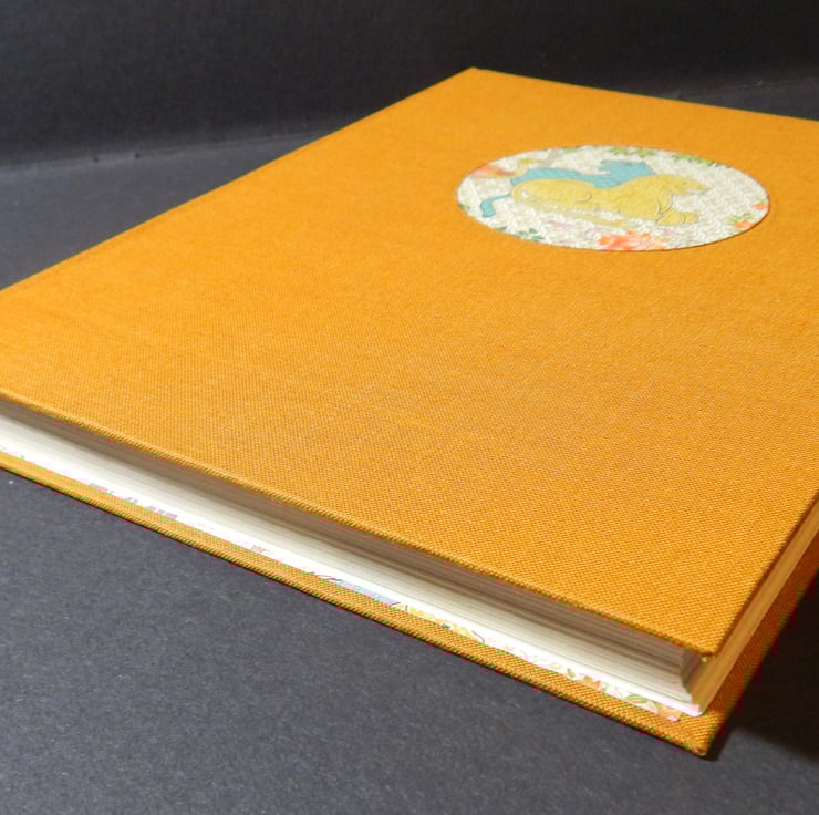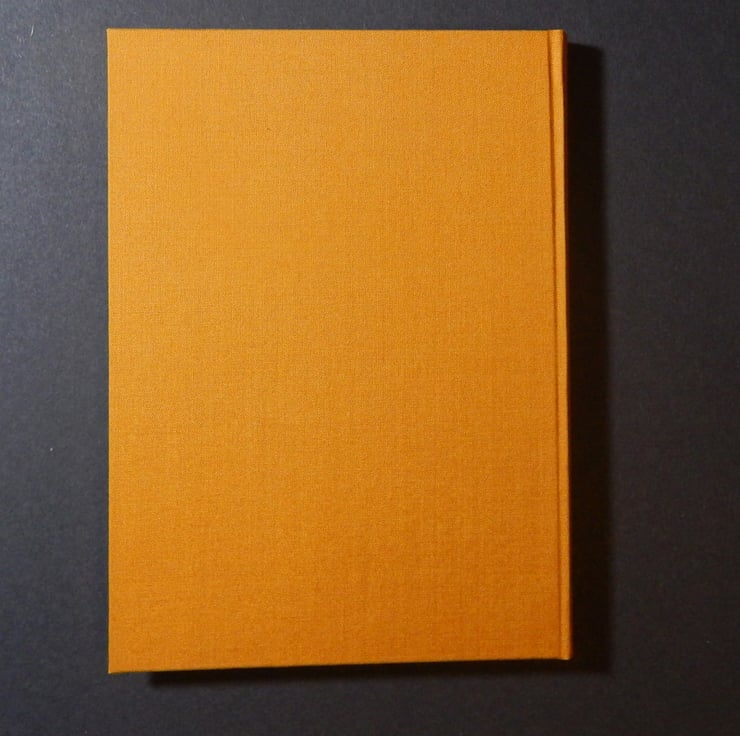 The covers are a high quality bookcloth, very soft and smooth to touch. It is a lovely sunshiney saffron colour.