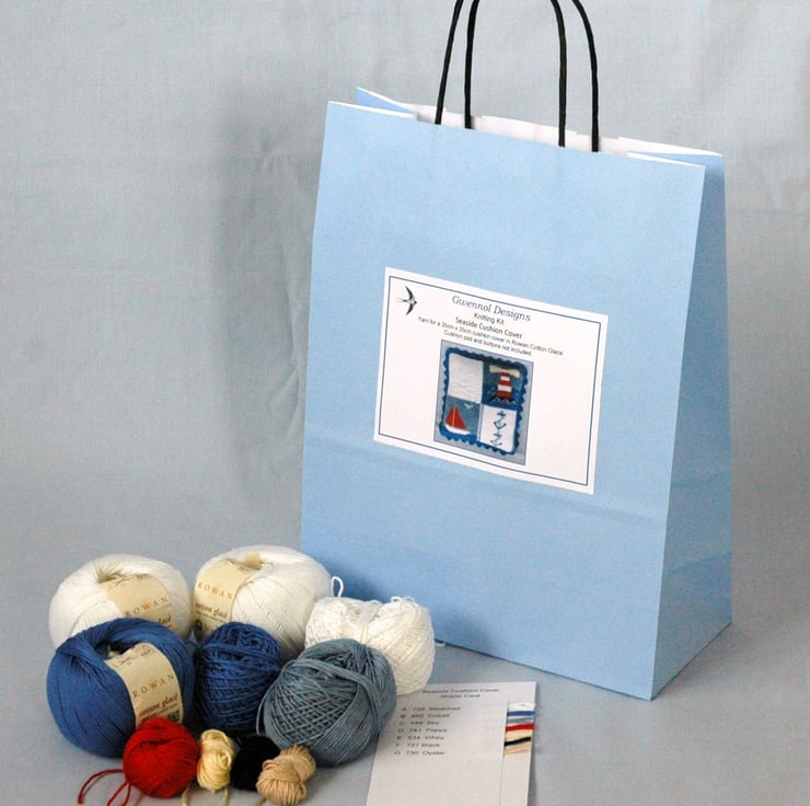 Knitting kit for a 35cm x 35cm (14 ins x 14 ins) cushion cover. The pattern is NOT included, please order a PDF copy from my Knitting Patterns Collection or message me if you would prefer a printed copy on good quality paper.