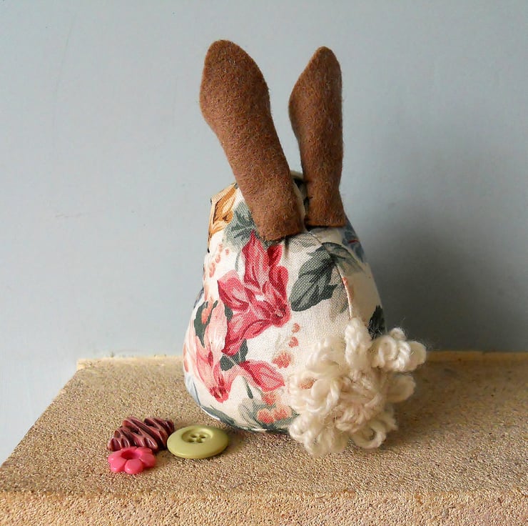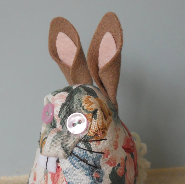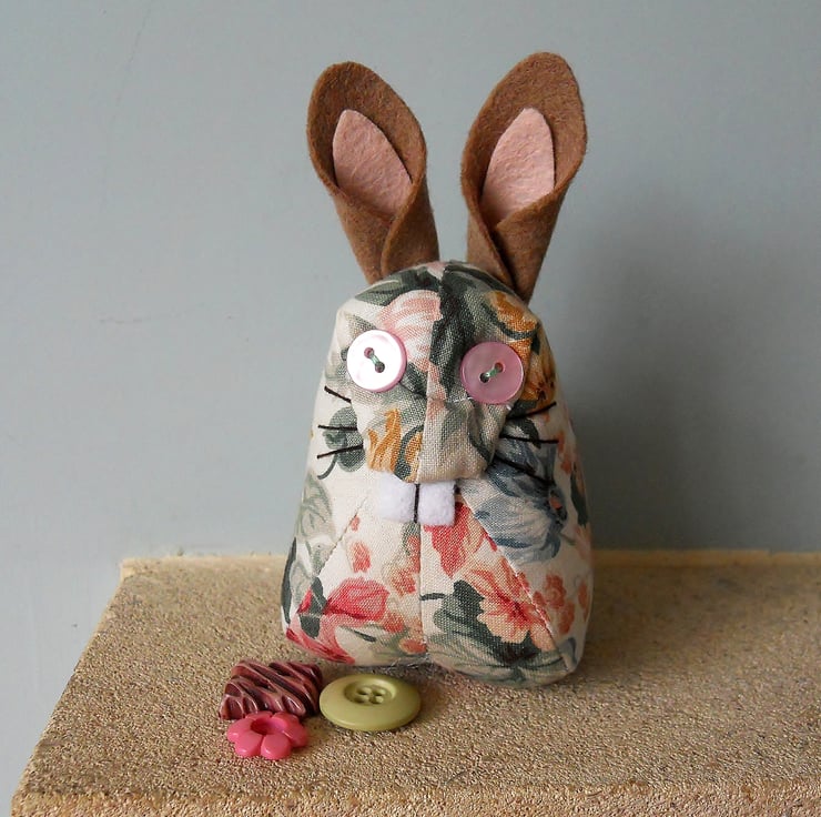 Retro Bunny Rabbit in 70s 80s Floral Vintage Fabric by WittyDawn