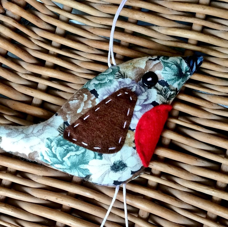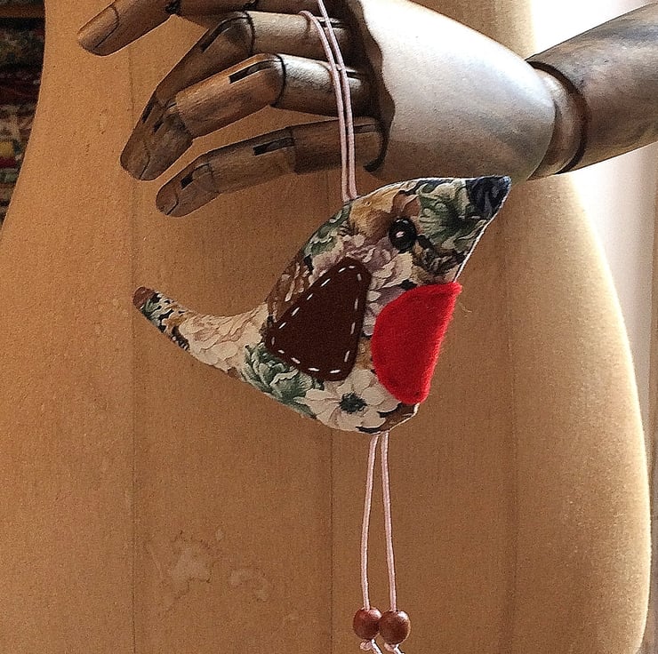 Retro robin made with pretty vintage fabric , by WittyDawn .