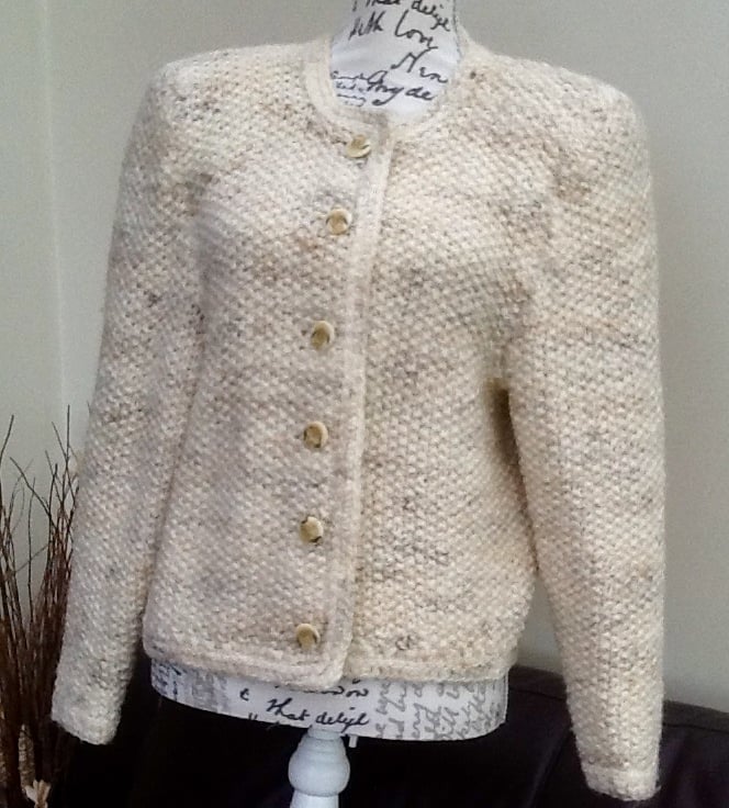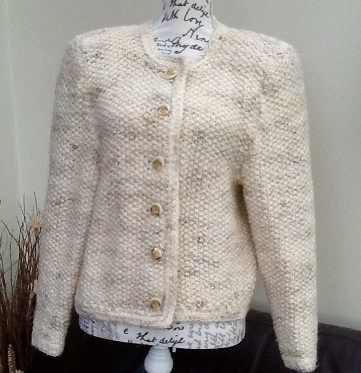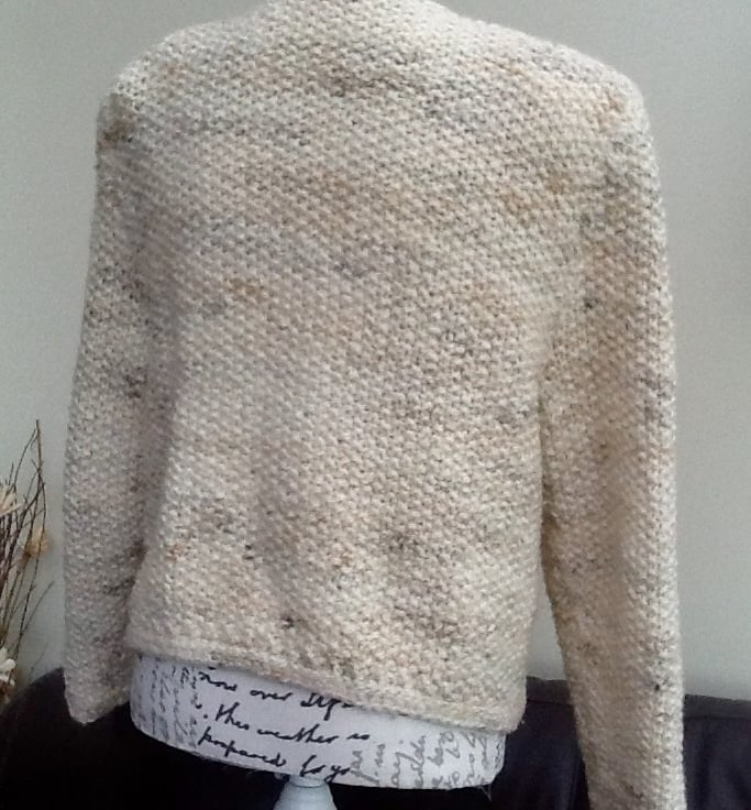 Classic Cream Marl, Hand Crocheted mixed blend Yarn Jacket, or Cardigan if you prefer. A classic style and very practical, UK size Approx 12 to 14.
