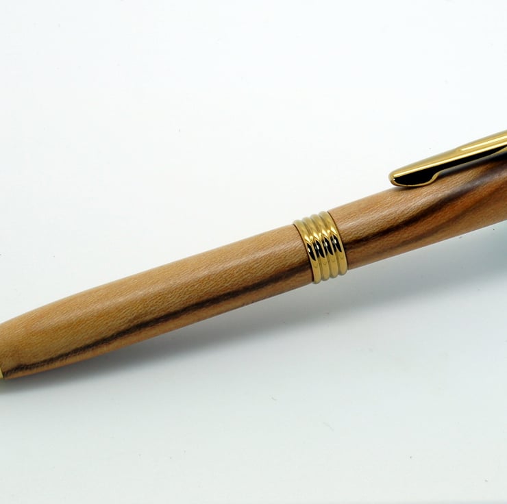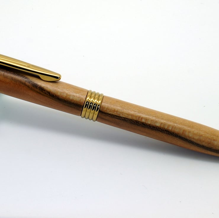 This pen was handturned by me in my workshop in suffolk, the metal parts are gold finish, Included in the price is a black card presentation box & Protective velvet sleeve