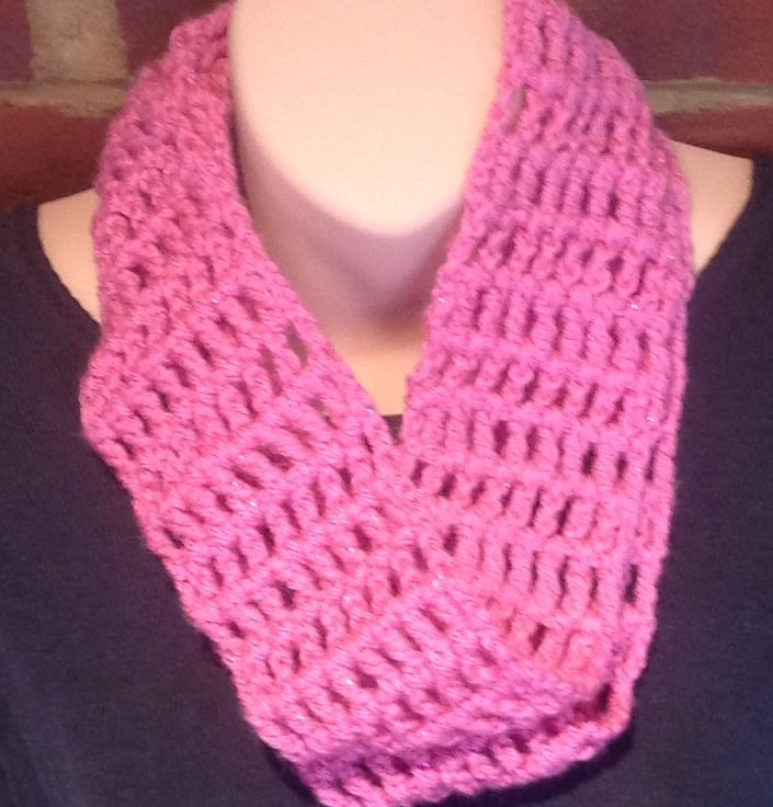 Lovely crochet scarf-snood with lots of lovely sparkly colours wool.
