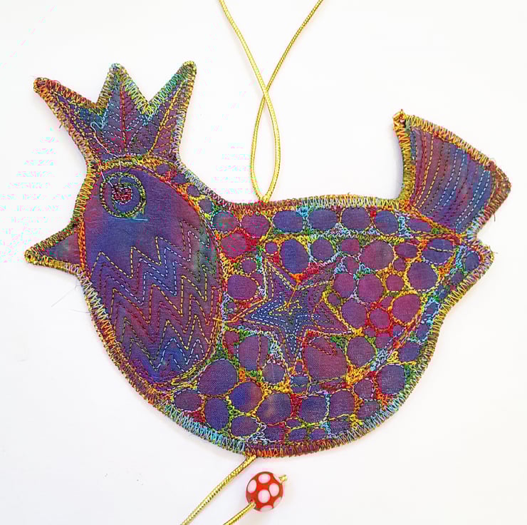 This is a handmade machine stitched textile festive Robin hanging decoration