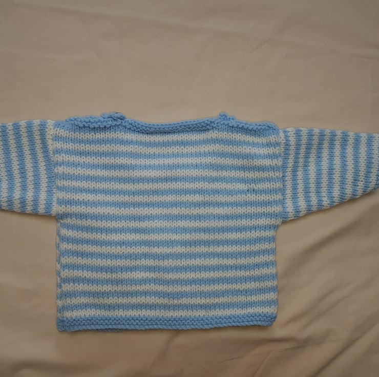 I have hand knitted this little jumper in a quality baby yarn which is machine washable.