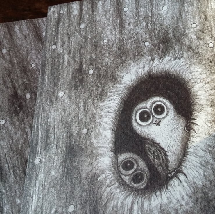 Limited edition Screelits Christmas Cards by Anne Garner. These A6 illustrations have been professionally printed to textured 250gsm gesso paper with rounded edges, and are supplied with flecked brown recycled envelopes and clear sleeves - ready to wing their way to your loved ones this Christmas.