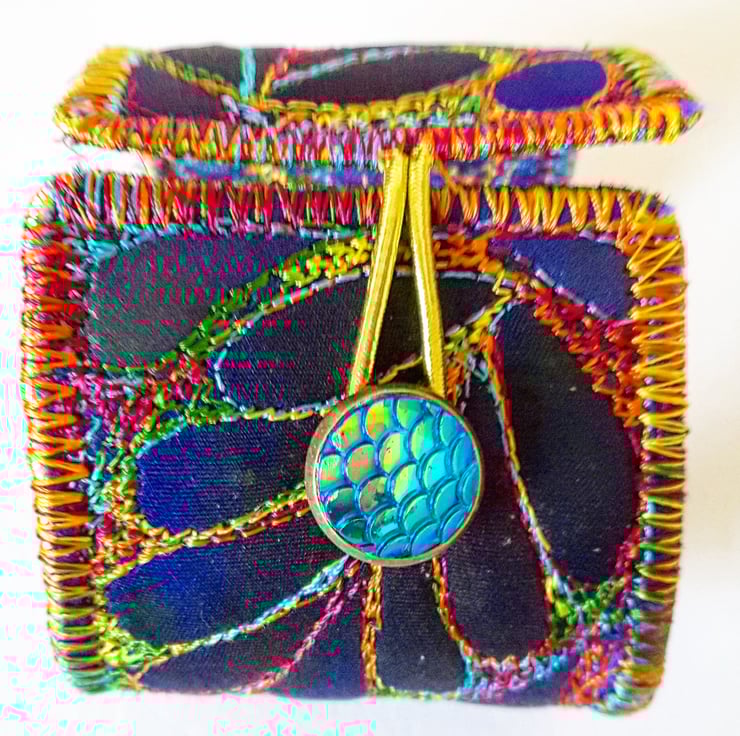 It has a gorgeous little button and an elasticated closure so it will stretch a little to fit a larger wrist