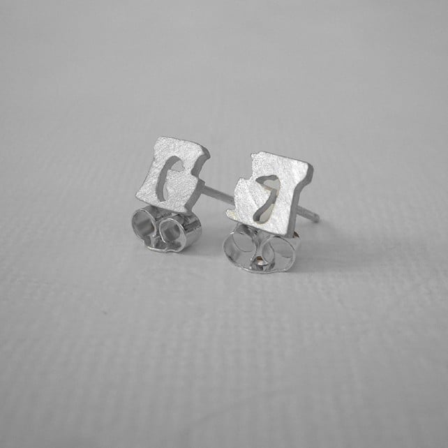 These cute food mixer (or even coffee machine!) earrings are handmade out of 1mm thick sterling silver. They are each approximately 8mm wide by 7mm high and have a sterling silver pin soldered to the back.