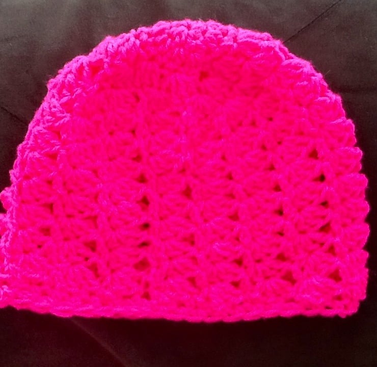 Hot Pink! A very pretty vibrant and super bright beanie crocheted hat.