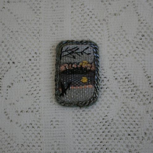 The brooch back is neatened with matching felt, blanket stitched in place. A brooch pin will be securely stitched in place before despatch.