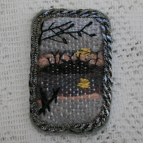 Inspired by a photograph of a sunset at Hanmer, this miniature woven tapestry is a unique piece of textile art.