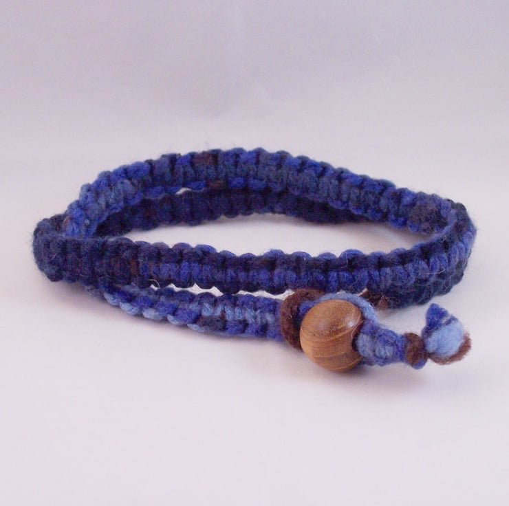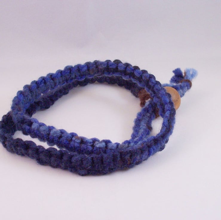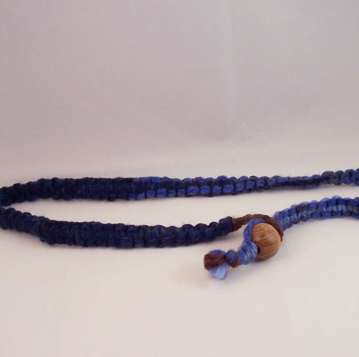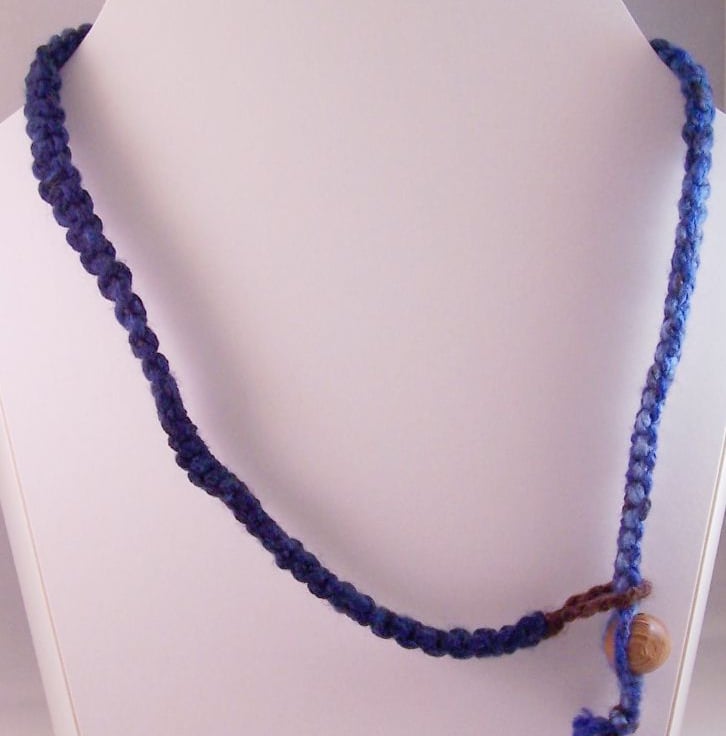 Macrame necklace in varigated yarn - midnight blue, blue and a hint of brown.