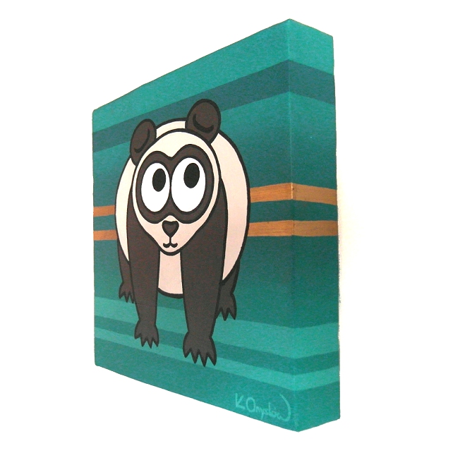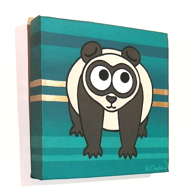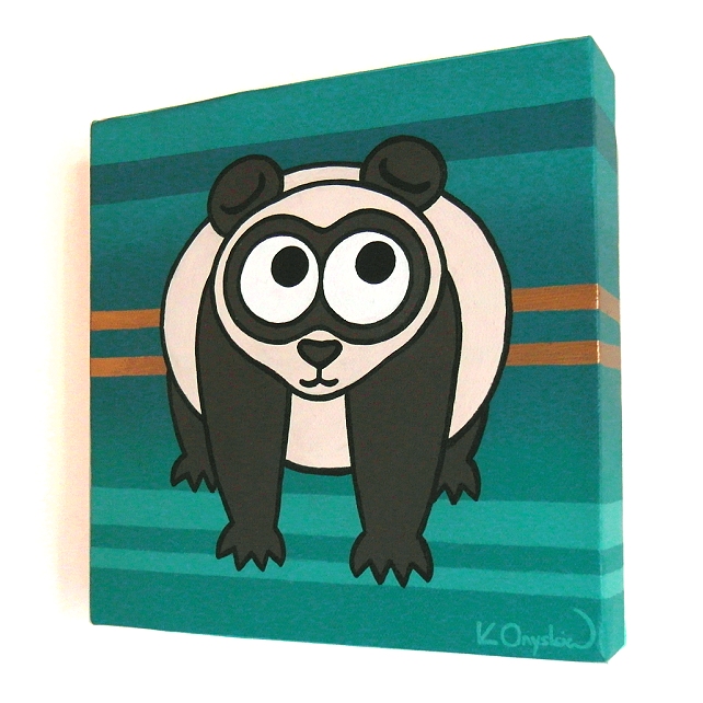 Panda Painting - cute acrylic nursery art with teal green stripes