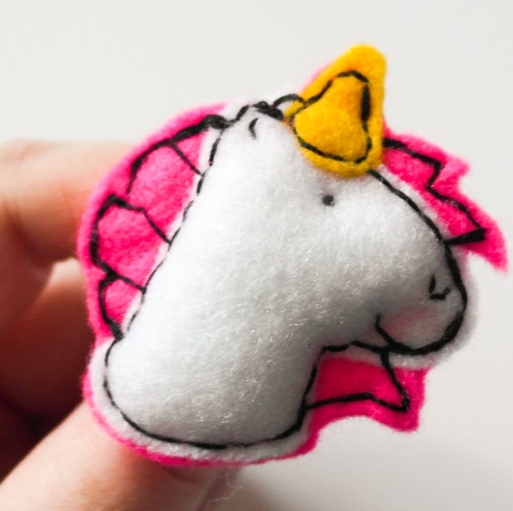 A cute handmade felt unicorn brooch. A unique gift for any unicorn fan. This is an ideal birthday gift, Christmas present, secret Santa, stocking filler or why not treat your self. Who doesn't want their own unicorn.