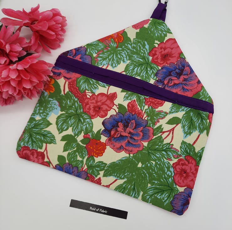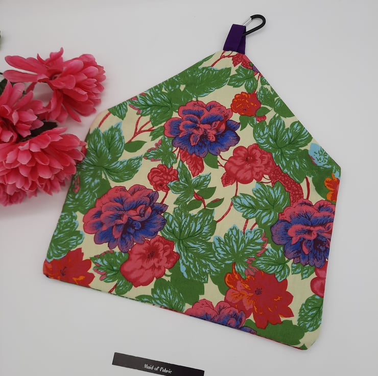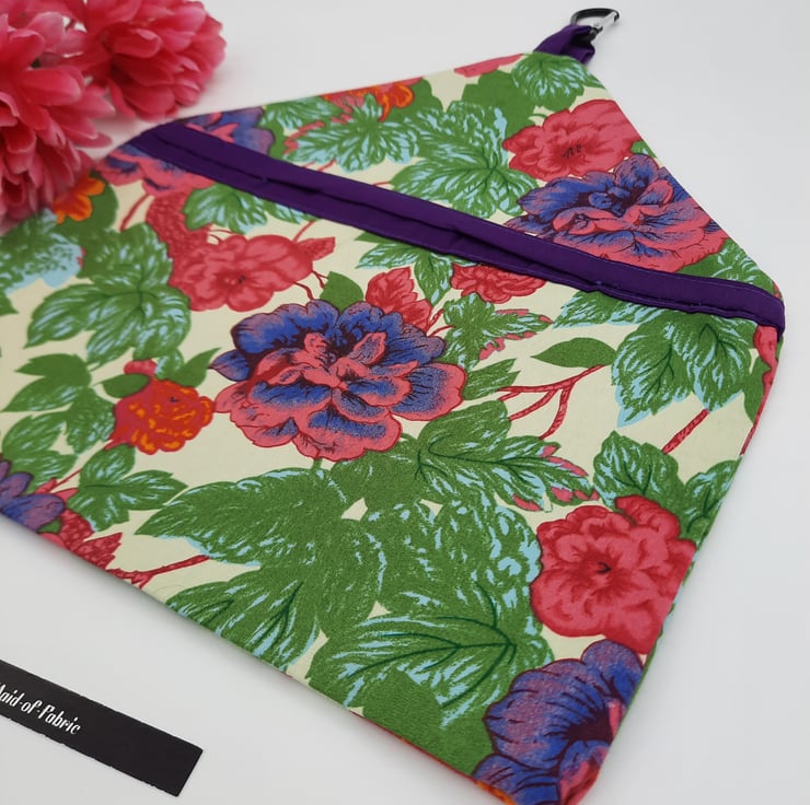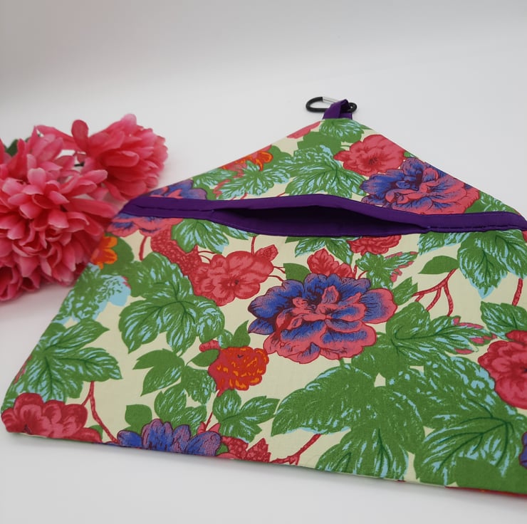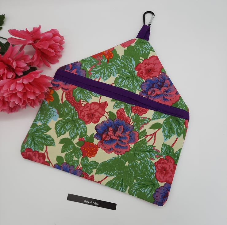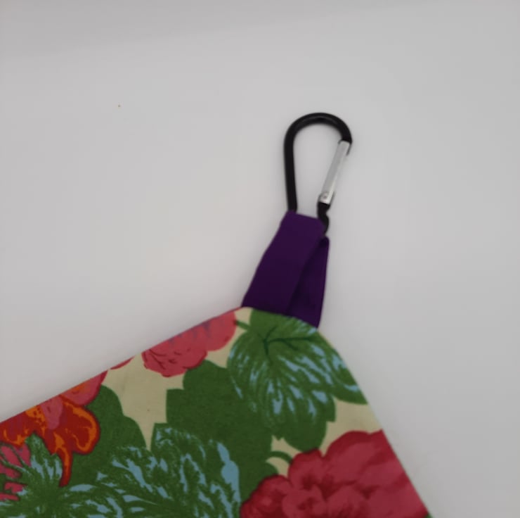 Peg bag, small, sale, purple and pink floral cotton fabric, clip on.