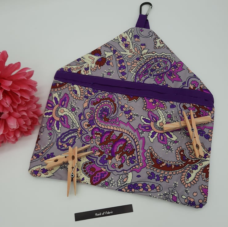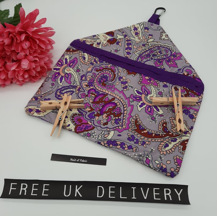 It has a carabiner clip so can be attached to the washing line and won't blow off in the wind.
