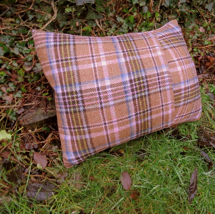 There is a deep envelope opening to the back of this cushion, which is the same tartan wool as the front.