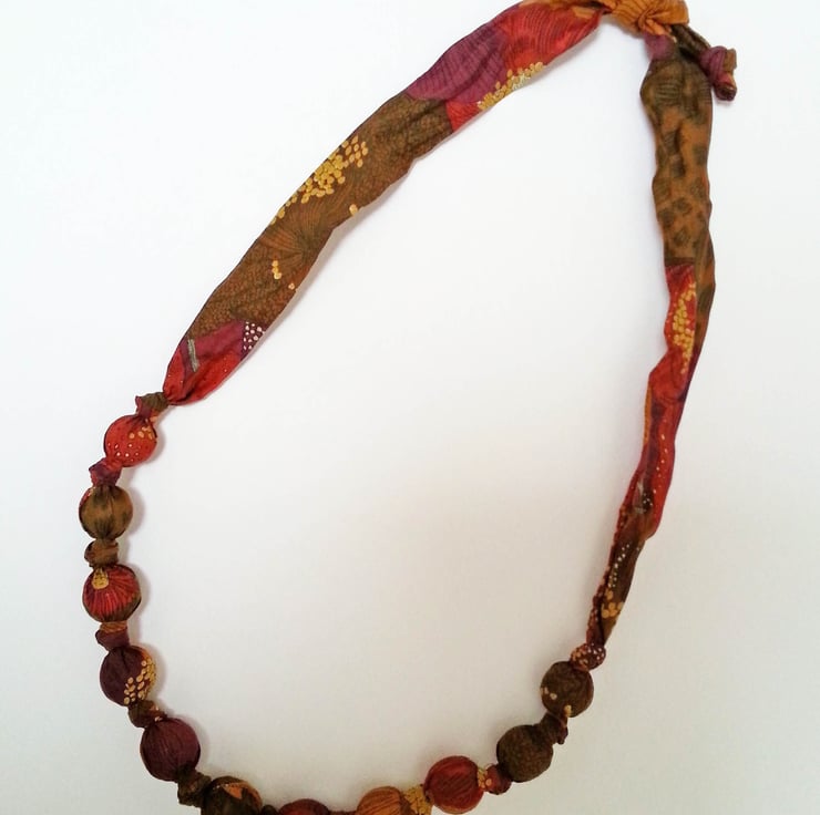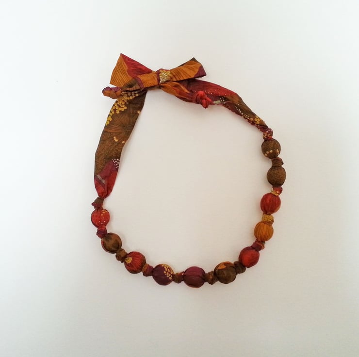 This Liberty print fabric necklace can be tied with a bow or a knot to vary the length from choker to mid chest. It is made out of Tana Lawn 100% cotton and so feels very soft next to your skin and has just the right weight to it to make it hang nicely.
