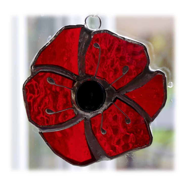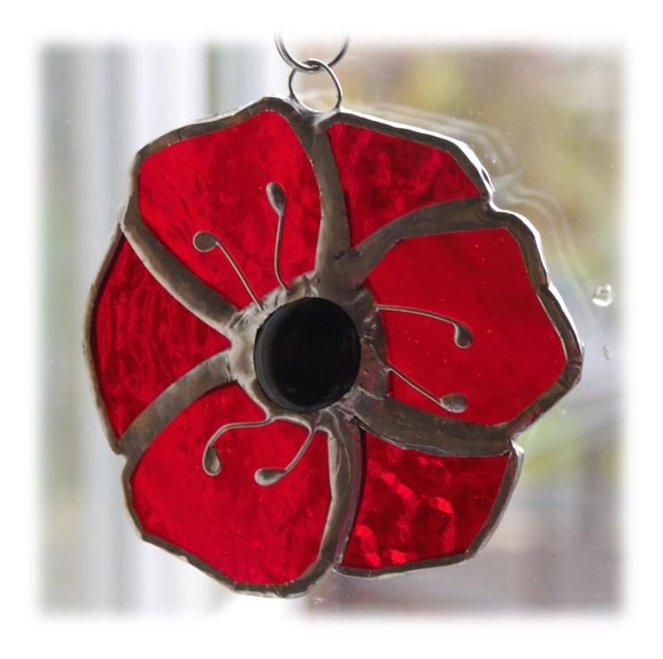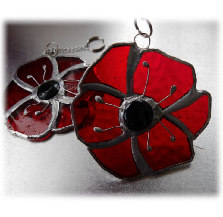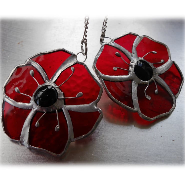 The centre of the poppy is a black glass nugget and this is adorned with 6 little wire stamens.