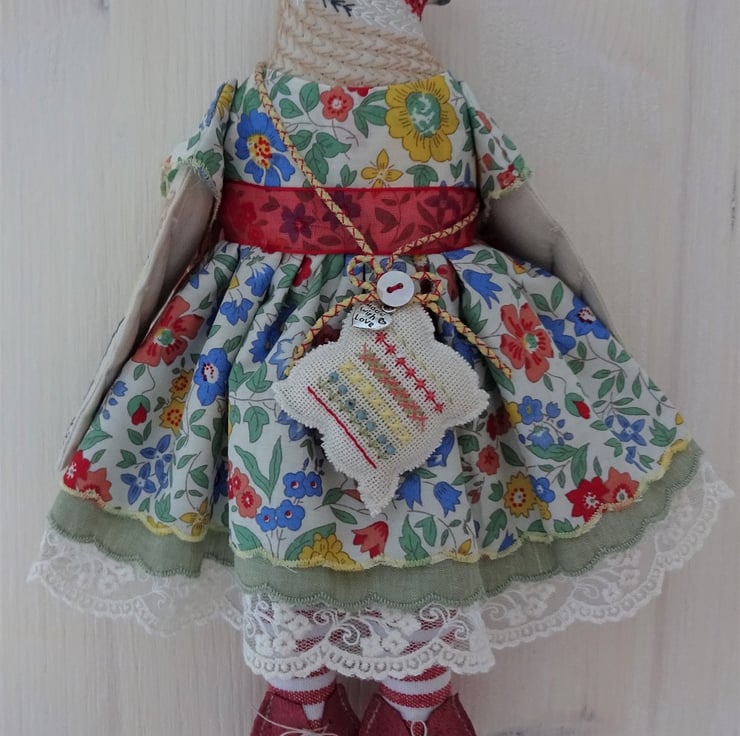 Please enjoy browsing and should you buy a doll she will be packaged in an organza bag. I have been given literally hundreds and will use them until they run out rather than let them go to landfill. Also I have been asked why I don't often repeat combinations of fabric with the dolls. It is because I tend to buy remnant stock where I can, tiny pieces of fabric that are too small for most people to use. So often I have only enough to make one doll. Thank you and my warmest wishes xx