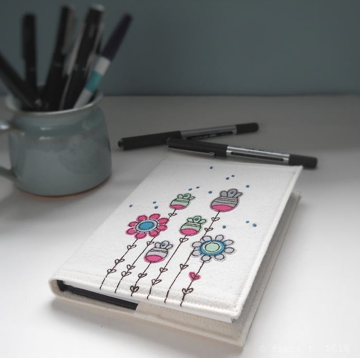 freehand embroidered floral notebook cover with A6 sketchbook.