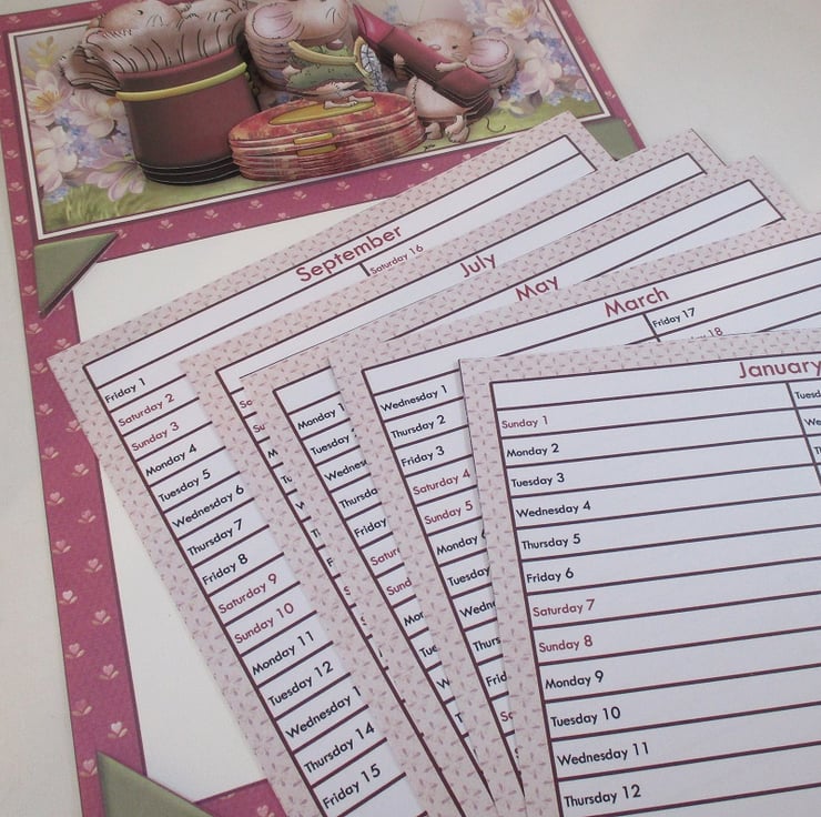 The monthly sheets fit into slots on the base so they can easily be changed . There is plenty of space to write on