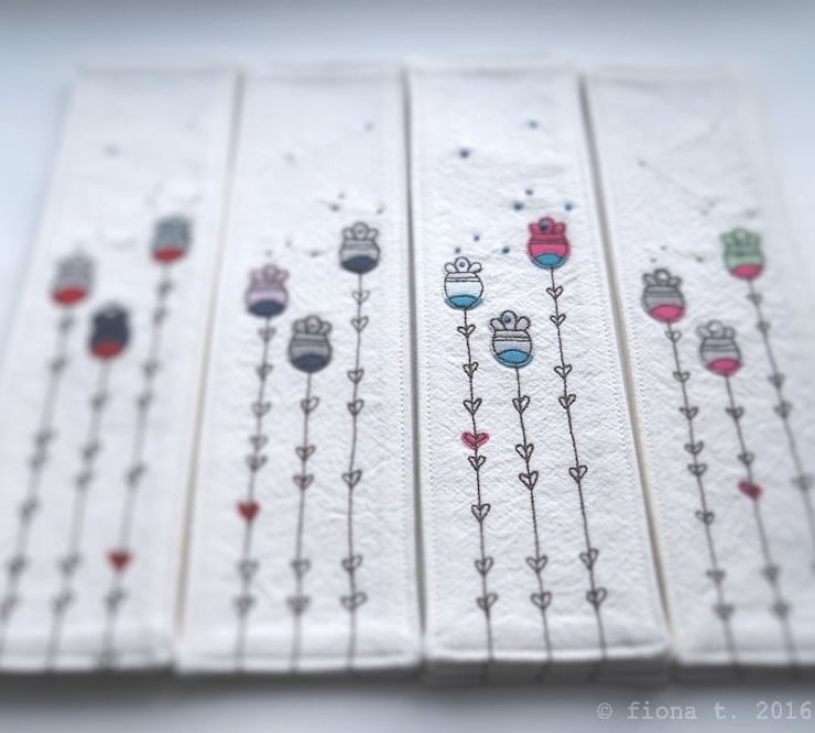 due to the very nature of free motion embroidery & handmade, each bookmark will vary eeeever so slightly.